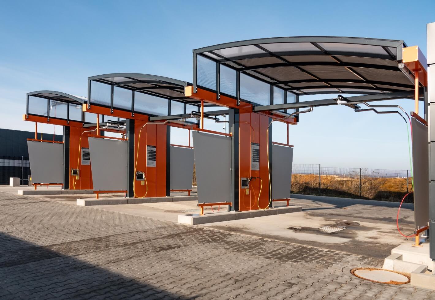 Waschstation mit berührungs- und bürstenloser Hochdrucktechnik – ausschließlich mit Hochdruck-Dampfstrahlern.